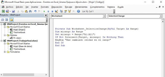 Figura 4. Código en VBA para un rango específico.